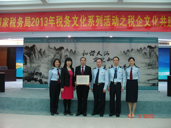 天河区国税局党组书记、局长罗得力在大会上作了重要讲话,并亲自为10家企业颁发“税企文化共建”匾牌。