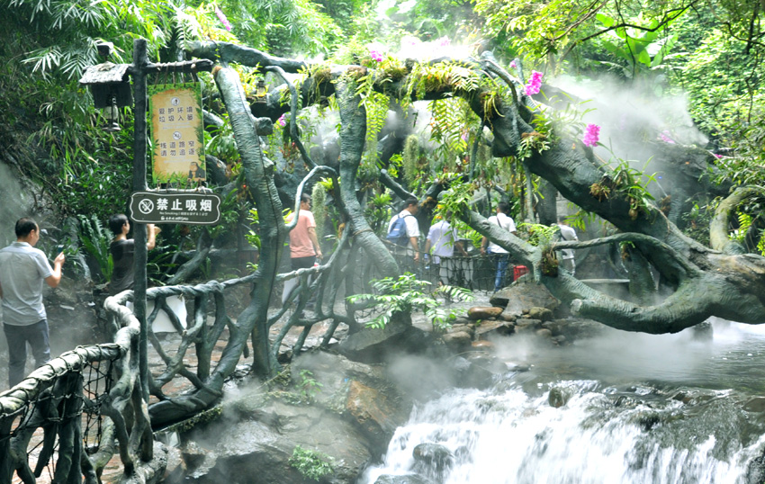 游览过美林湖继续驱车一小时,导游带着我们登上游船来到了“天开清远峡,地转凝碧湾”的素有“广东小三峡”美誉的清远飞来峡。大家在船上一边品着地道的清远鸡,新鲜的河鱼和时令蔬菜,一边欣赏着北江两岸千姿百态的山峰,江水滔滔,凉风拂面,平日工作的劳累此时都消失殆尽。大家流连于山水美景之间,好不惬意!