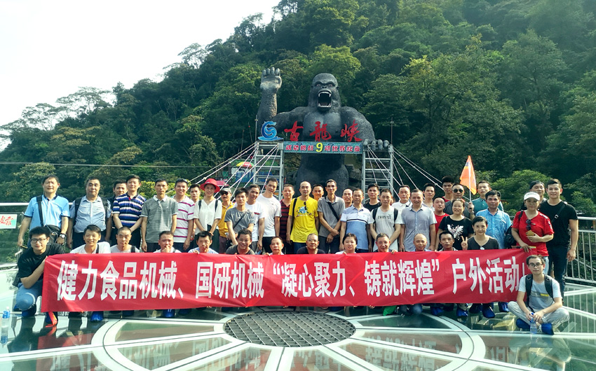 两小时的小北江之游,大家都还余味未尽。导游又带上大家赶往这次团建活动的重头戏的目的地:古龙峡的“云天波霸”。今天公司参加团建的所有员工都要挑战目前世界上较宽的高空玻璃桥,玻璃桥像一条通体透明的巨龙连接着峡谷两岸,桥下悬空超过100米,站在桥上向下看,真是令人心惊胆战,大家相互鼓励,三三两两牵手前行,用相互的关爱顺利通过并成功抵达世界较大直径的悬空玻璃平台。尽管大家都汗流浃背,但每个人脸上都洋溢着喜悦。因为此时大家都收获了克服恐惧心理后战胜困难的勇气和成功!