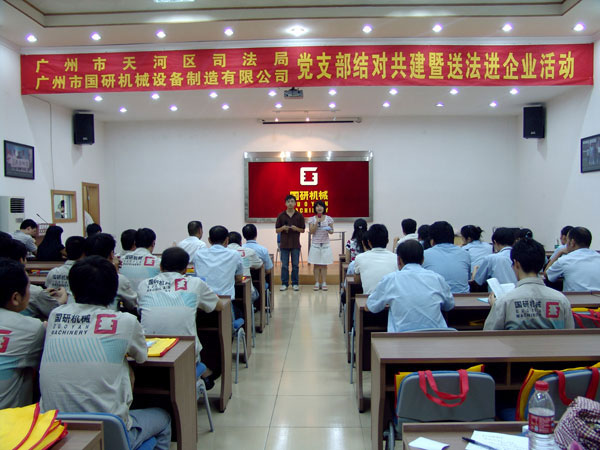 9月7日下午,广州市天河区司法局党支部和文教工作队一行18人在局长罗育辉和副局长曾晓云的带领下,来到广州市星空体育在线(中国)唯一官方网站设备制造有限公司举行党支部结对共建暨送法进企业活动。