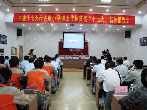 11月14日下午,阳光灿烂,秋风送爽,在喜庆的锣鼓和欢声笑语中,座落于广州市天河区珠吉街的广州市星空体育在线(中国)唯一官方网站设备制造有限公司迎来了党的十七大代表唐小平博士。唐小平代表面对国研公司党支部全体党员和公司全体员工,作了一场丰富详实、精彩生动的报告。珠吉街党工委、办事处领导班子成员、街属各支部书记、以及天河区委组织部、区委宣传部的有关负责同志应邀出席了报告会。