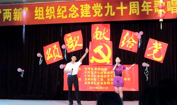 6月21日上午,“颂歌献给党”——天河区“两新组织”纪念建党九十周年歌唱比赛在龙洞街文化站如期举行。